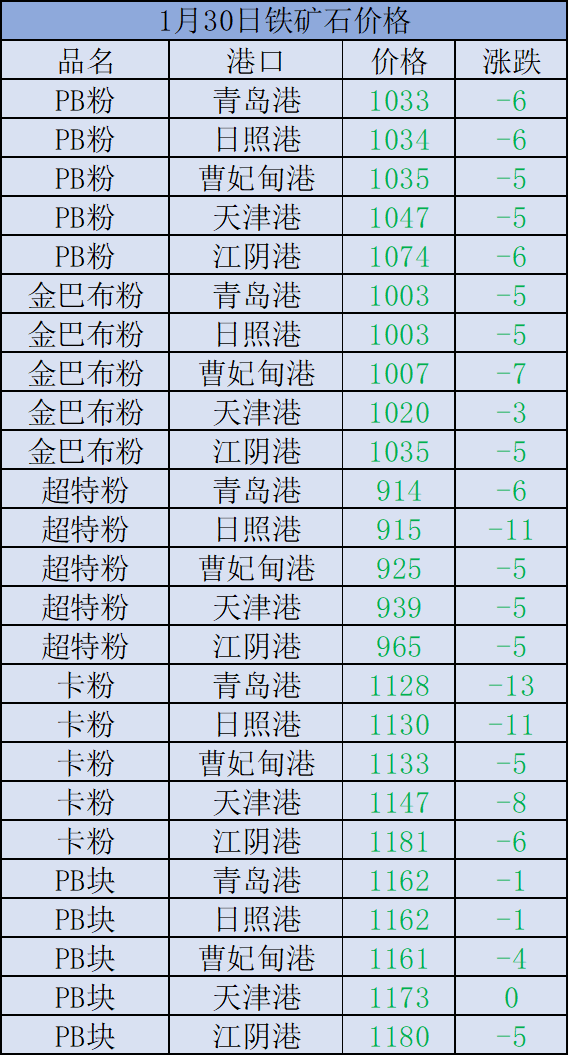 1月30日國內(nèi)鐵精粉行情匯總