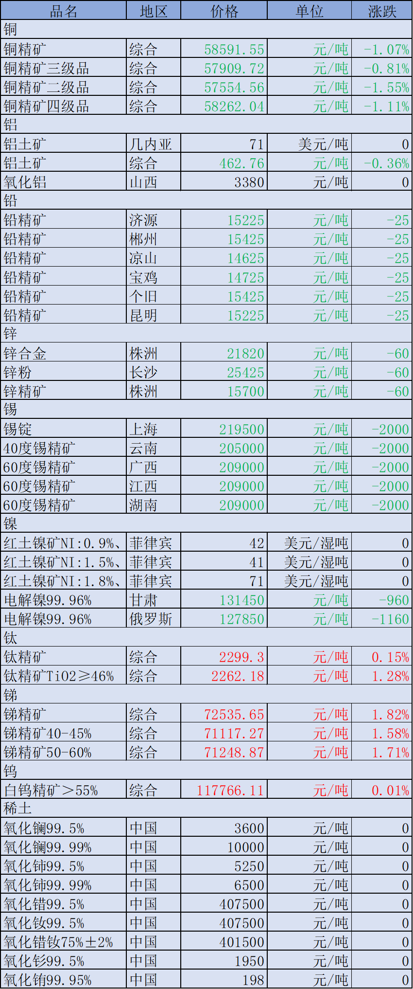 1月30日有色金屬價格