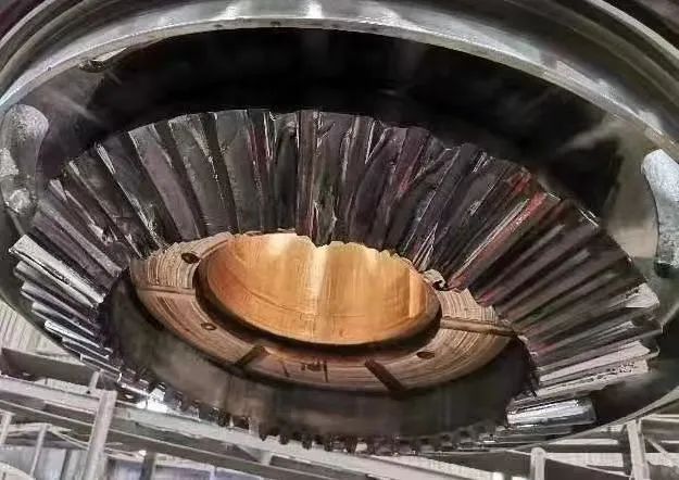 安裝大小齒輪時未將齒輪嚙合間隙調(diào)整到設(shè)計標(biāo)準(zhǔn)值之內(nèi),或者運行過程中,其他影響齒輪間隙的備件(如:多缸系列的上、下推力軸承、單缸系列的偏心耐磨板、機架襯套等)磨損嚴(yán)重甚至磨損不均勻,接觸面有傾斜未及時更換,從而影響大小齒輪間嚙合間隙,在生產(chǎn)中易產(chǎn)生打齒現(xiàn)象。