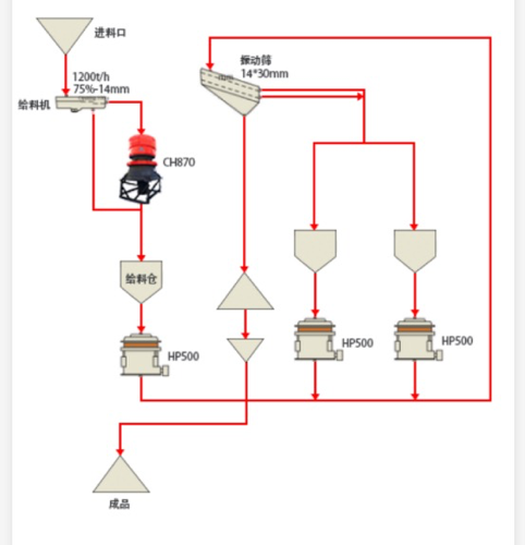 2007年開工建設(shè)800t/小時(shí)破碎系統(tǒng),2008年8月投料試車,中碎用歐洲進(jìn)口山特870破碎機(jī),3臺(tái)國產(chǎn)HP5,2臺(tái)3.6x7.2m雙層振動(dòng)篩,篩孔16mm。十個(gè)月的生產(chǎn)證明,實(shí)際系統(tǒng)生產(chǎn)合格力度能力400噸/h,60%-12mm,與設(shè)計(jì)10,000t/d、75%-12mm相差甚遠(yuǎn),破碎系統(tǒng)滿足不了磨礦能力的要求。生產(chǎn)過程中發(fā)生的主要問題是: